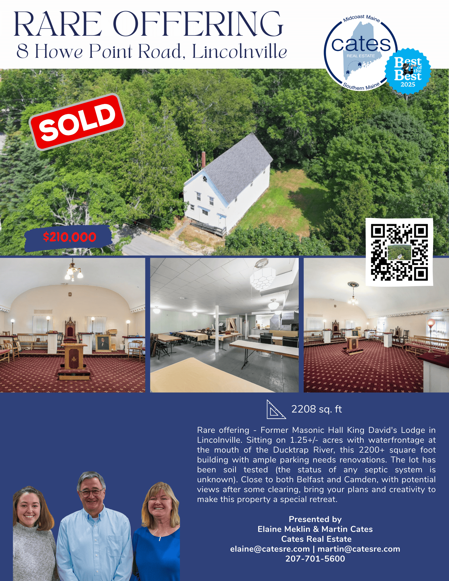 Just SOLD - Former Masonic Hall King David's Lodge in Lincolnville. Sitting on 1.25+/- acres with waterfrontage at the mouth of the Ducktrap River, this 2200+ square foot building with ample parking requires renovations.